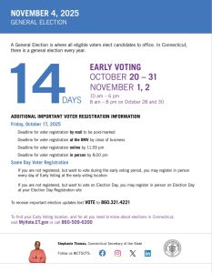 A Primary will be held September 9, 2025 if the required primary petition(s) for opposition candidate(s) is filed, pursuant to Sections 9-382 to 9-450 of the Connecticut General Statutes, not later than 4:00 p.m. on August 6, 2025. Petition forms, instructions and information concerning the procedure for filing of opposing candidacies, including schedules, may be obtained from: Karen Odell, Democratic Registrar of Voters and Sherri Gray, Republican Registrar of Voters, 562 Colebrook Road, Colebrook, CT